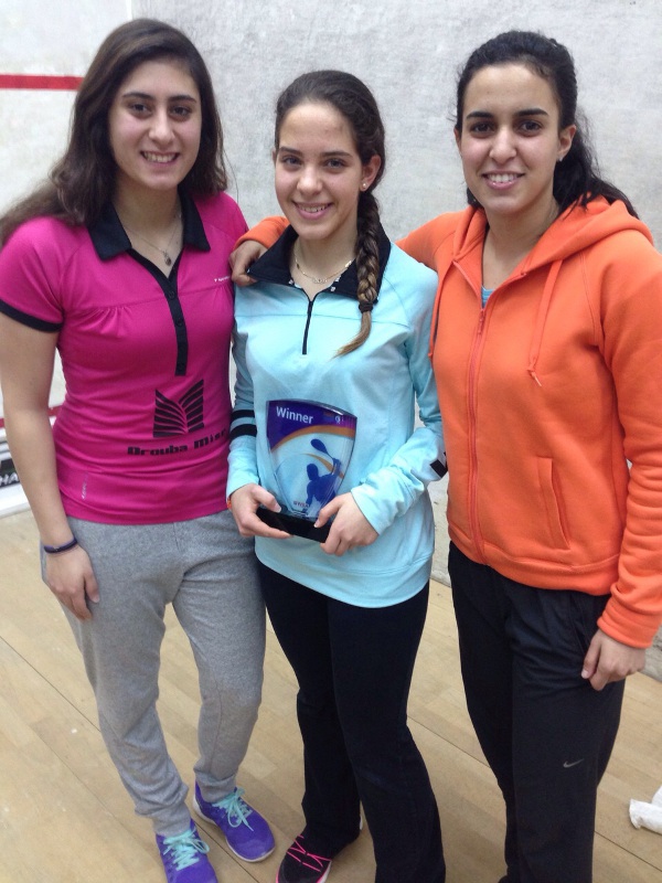 [1] Nouran El Torky (EGY) bt [6] Zeina Farid Mickawy (EGY) 11-5, 13-11, 14-12 (36m)