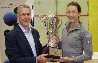 Urquhart received her trophy from Australian legend Geoff Hunt, the eight-time British Open champion and four-time World champion (as pictured above).
